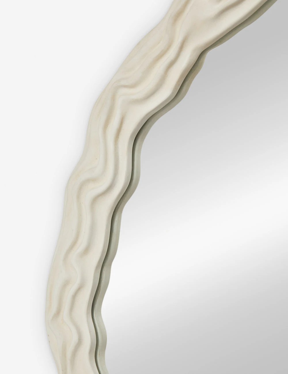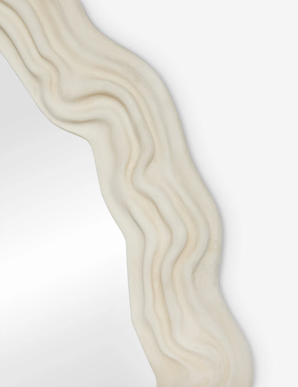 A free-flowing ridged design creates an almost topographic feel in this unique mirror frame. The on-trend round design is perfect for offering a fresh dimension above an entryway or console table. This piece is from our exclusive Sarah Sherman Samuel collaboration and features all the trademarks of her warm, edited style.