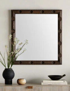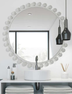 Artisanal detail creates a delicate texture in this round wall mirror. The carved wood frame features scalloped cutouts adding depth and a dramatic appeal to your wall decor. Style this mirror for an organic touch in a transitional space, like an entry or hallway.