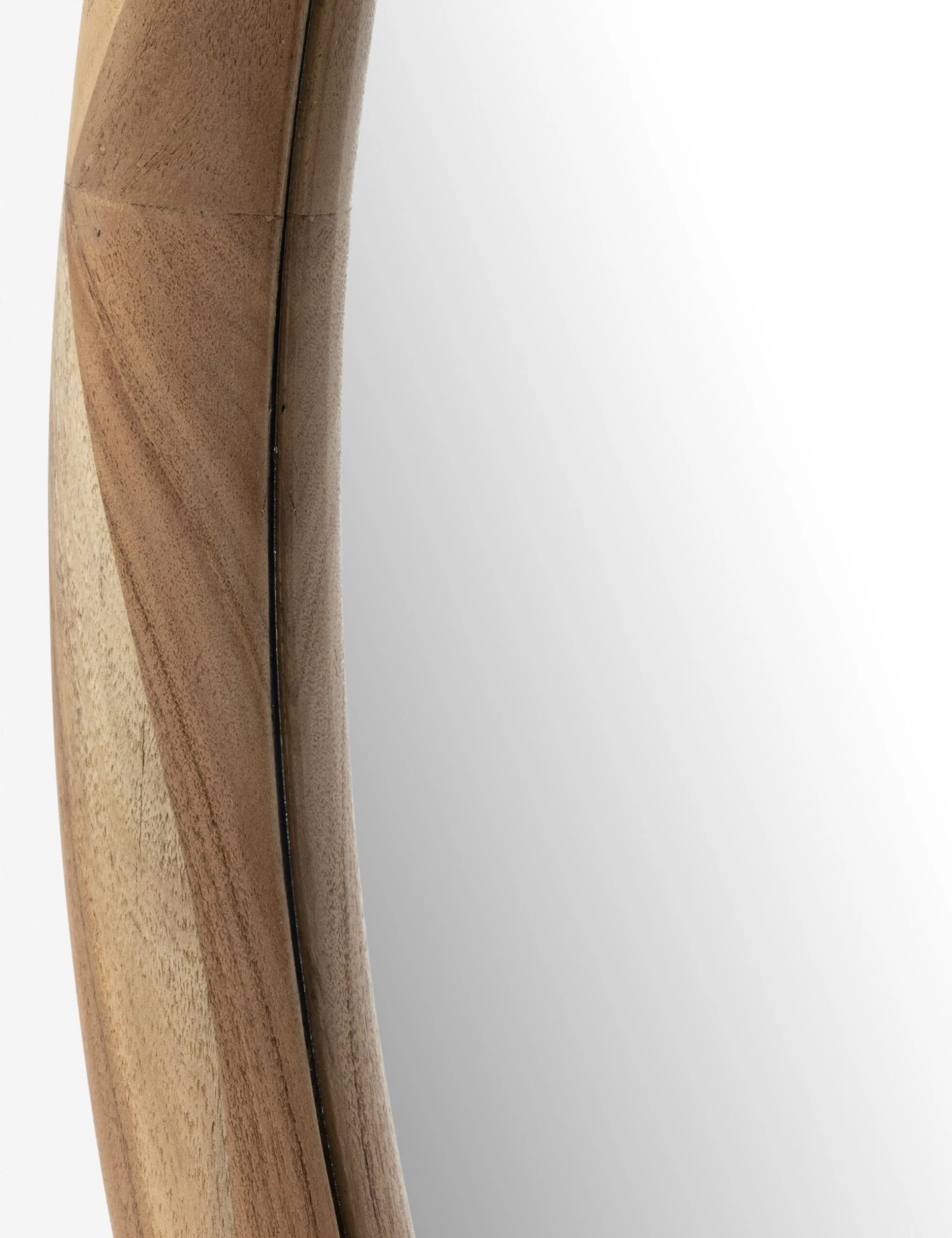 This round wall mirror has a clean profile that will elevate an entryway or transitional space with an enduring elegance. A smoked acacia frame offers a warm natural tone and a durable quality that suits this mirror’s timeless design.