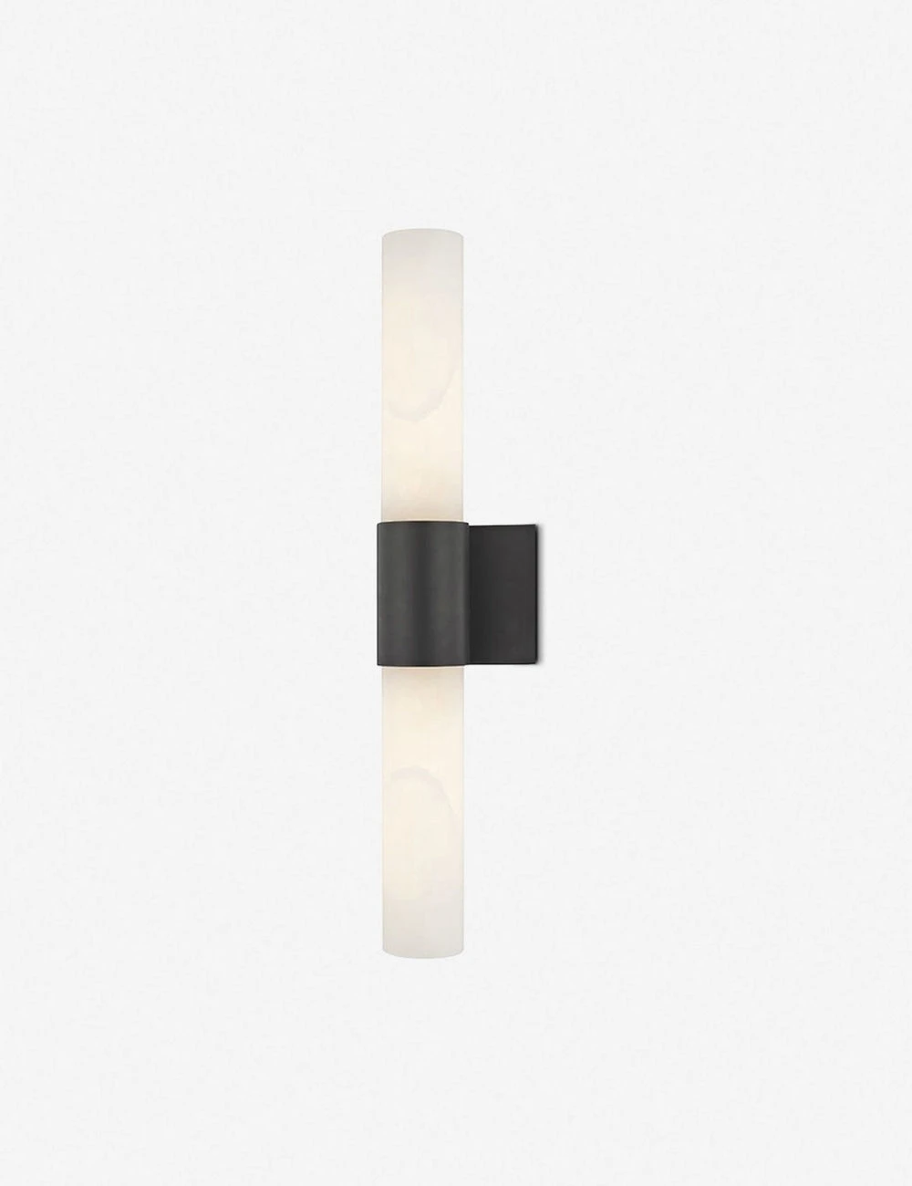 This sleek wall sconce will light up your room! With a thin cylindrical shape, this fixture features two individual lamps secured together with a metal band for a single, fluid appearance. It’s a modern pop of light and a work of art.