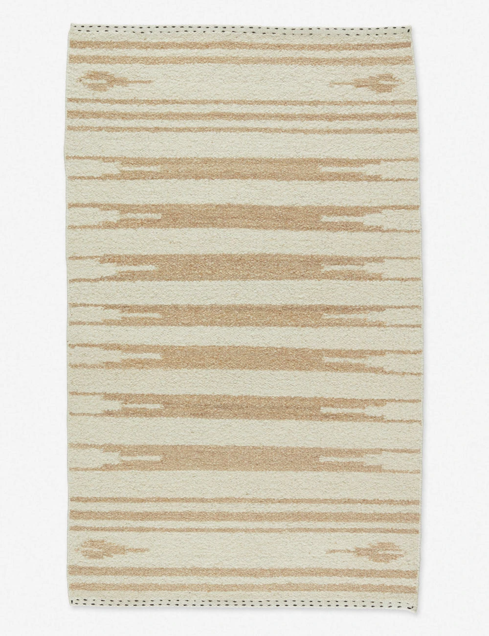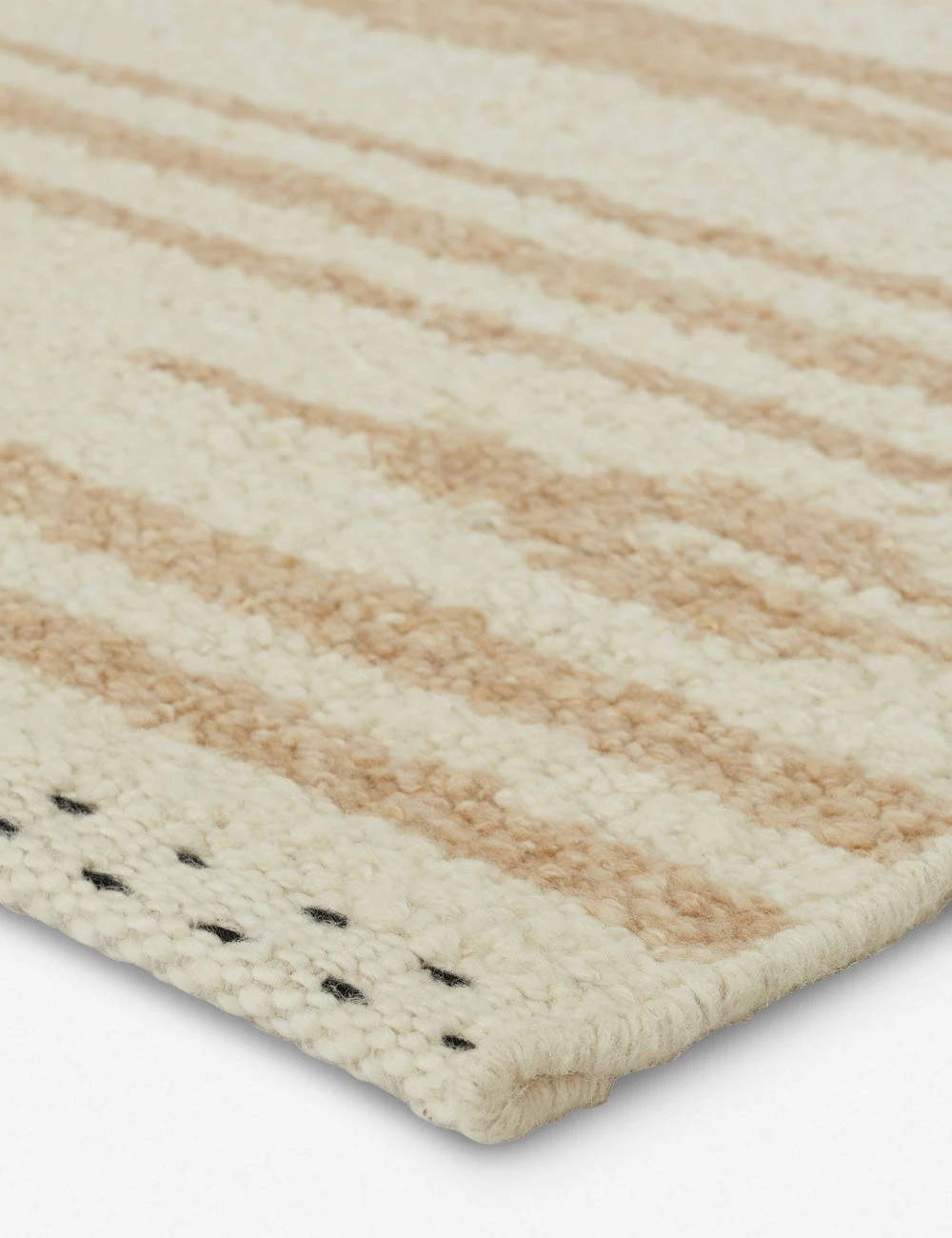 Rich with texture, this area rug expresses geometric appeal in inviting tones. Hand-loomed of soft, durable wool, this rug reimagines a kilim look with its on-trend plush pile and abstract linear pattern.