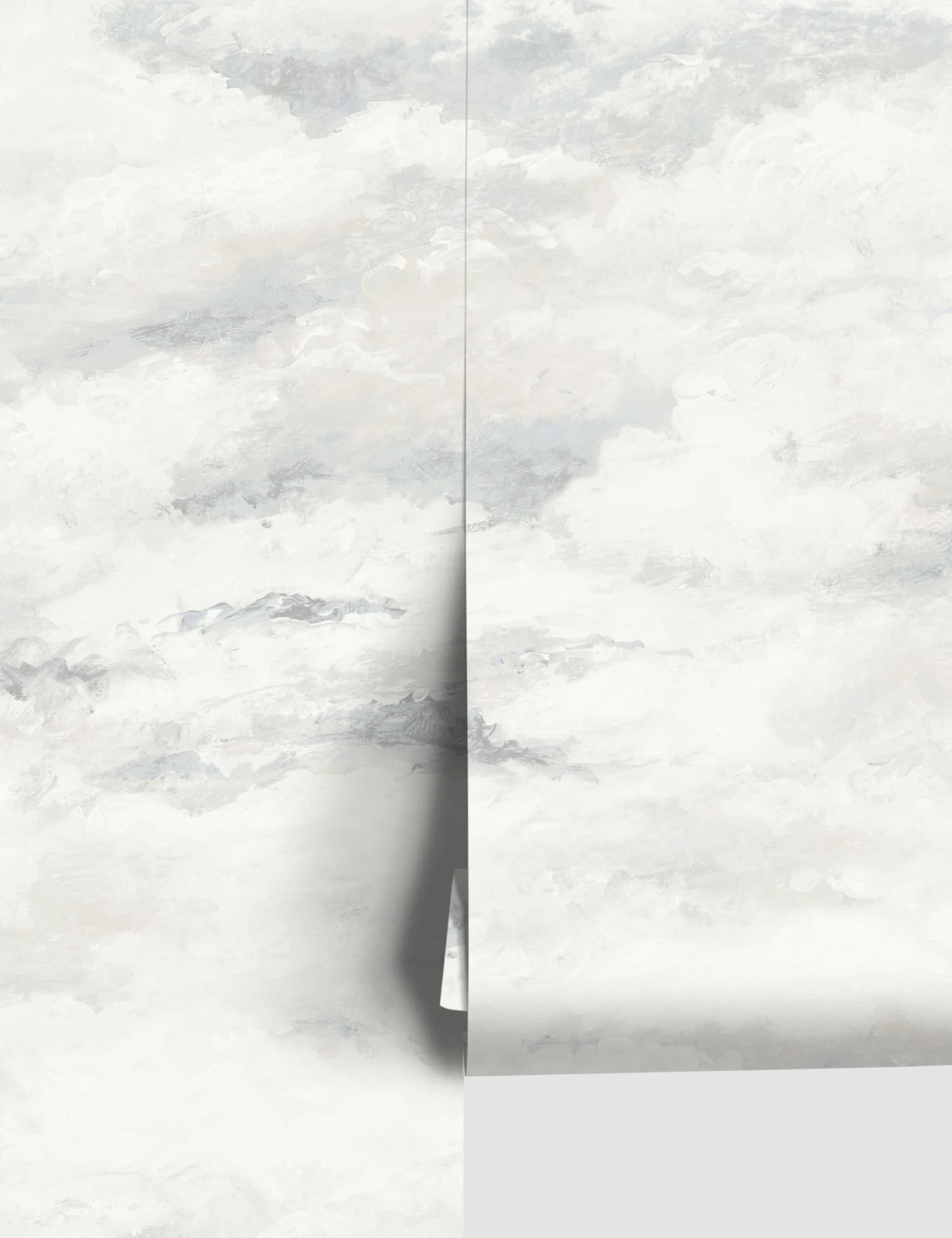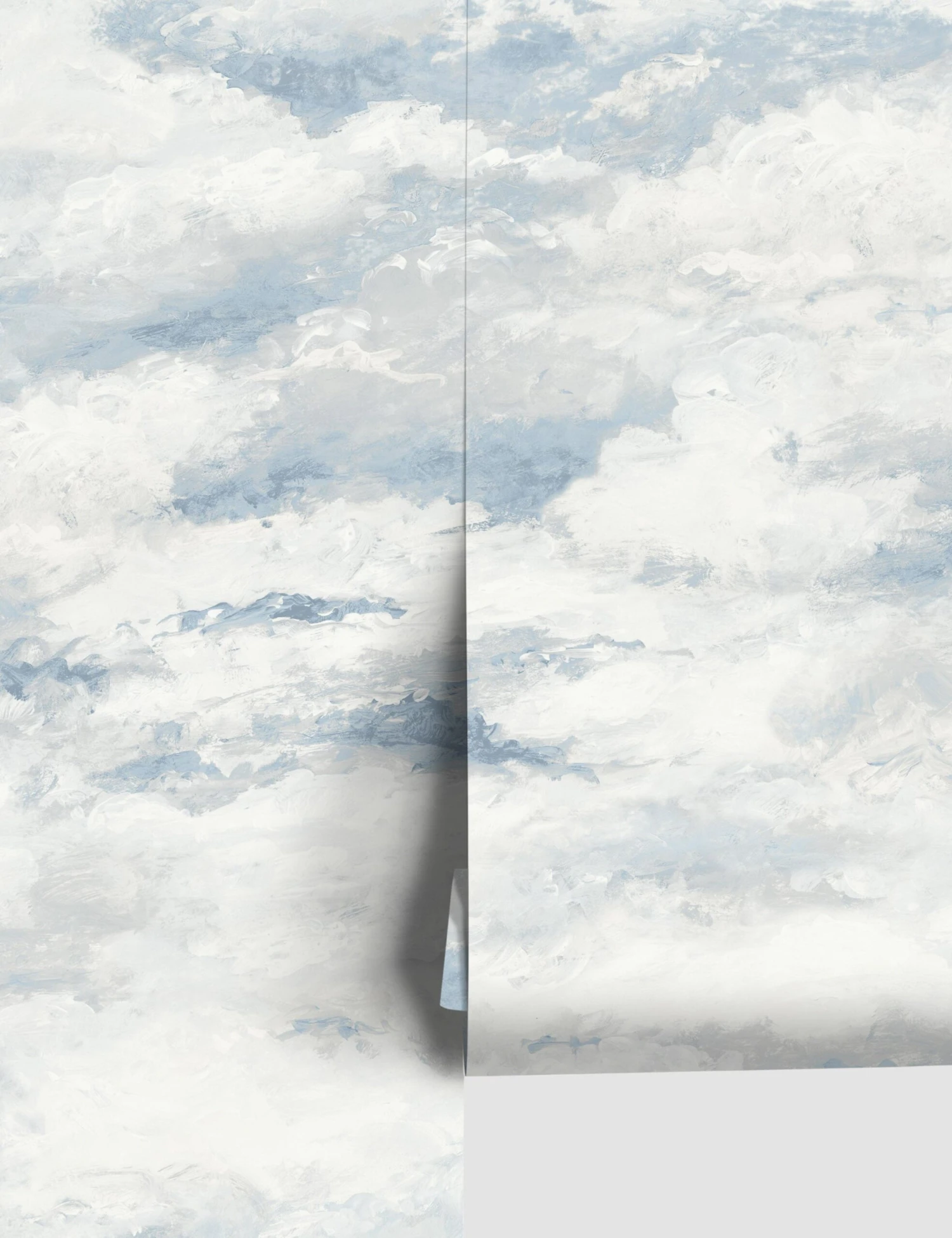 A billowy, cloud-filled sky imbues this wallpaper with a soft, painterly air. We love the transitional appeal of this home wallpaper when styled as a serene treatment for a thoughtfully refined bedroom or lounge.