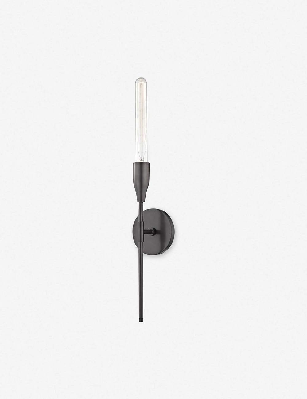 Sleek lines get an industrial vibe with an aged bronze finish. This wall-mounted sconce is ideal for contemporary spaces that need a subtle glow.