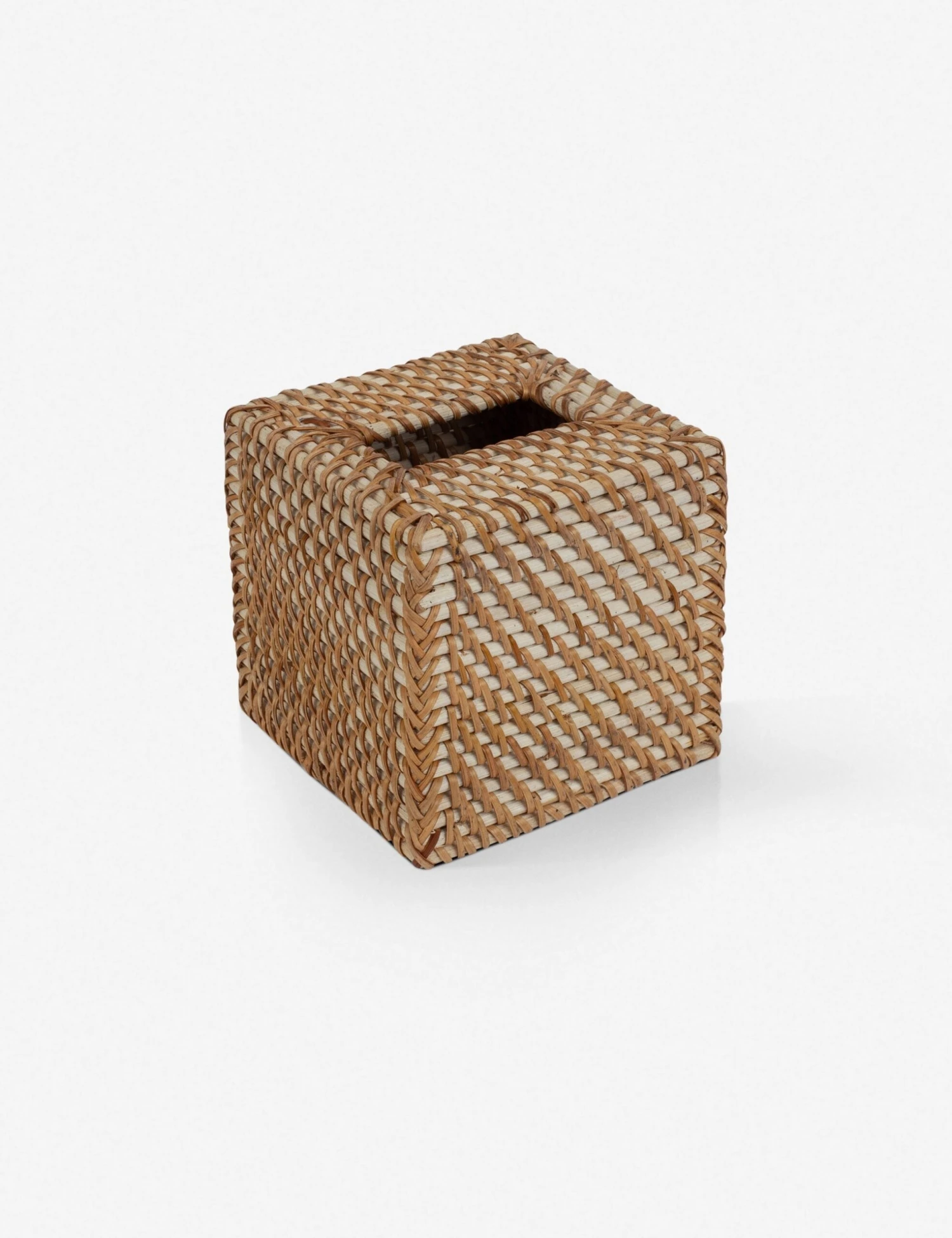 This four-piece vanity set is the perfect way to keep your bathroom counter organized in style. Featuring a tissue box, storage canister, soap dispenser and tray woven with natural rattan, this amenities set adds an organic appeal to the look.