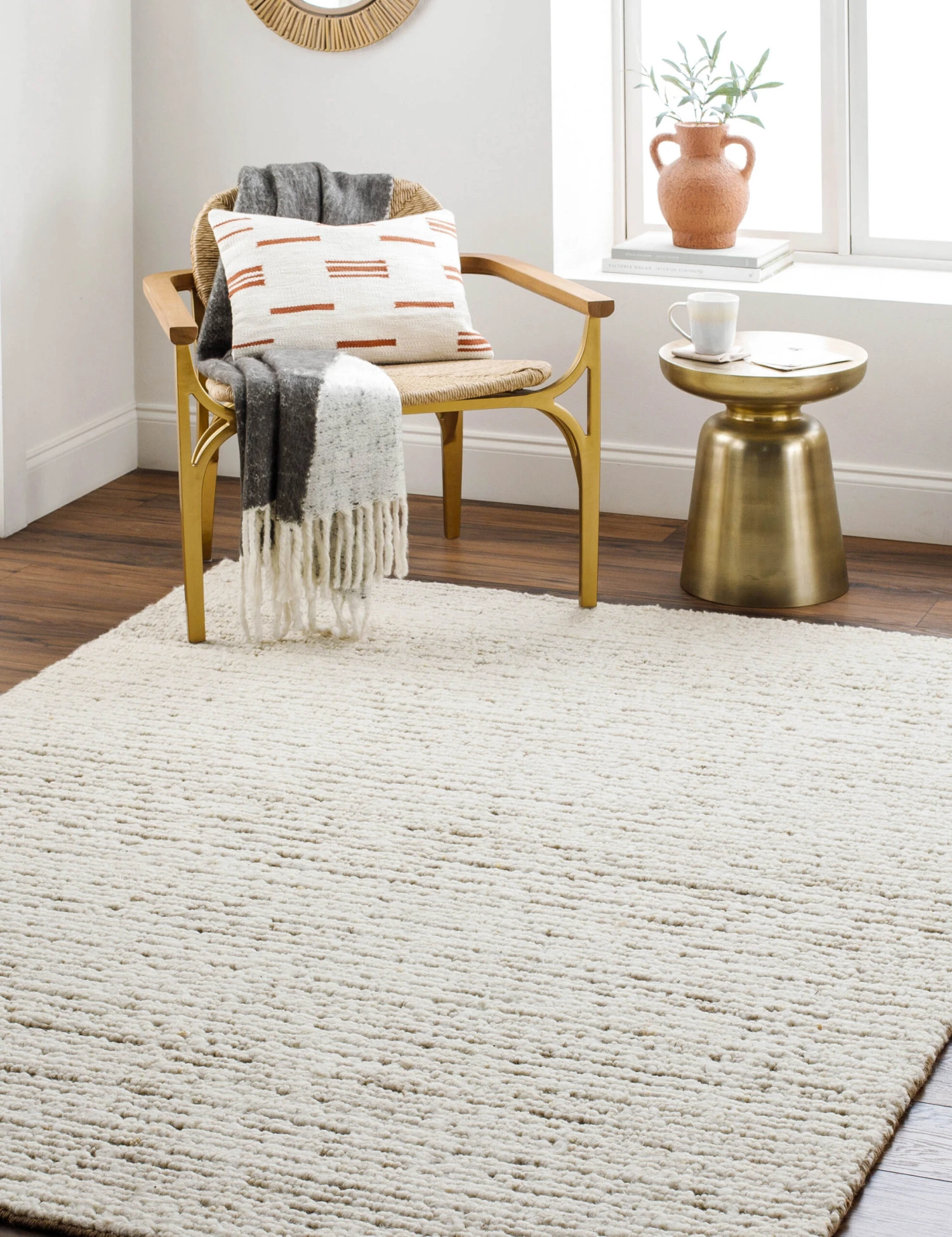 Add some texture to your edit with the Marcourt rug. This handwoven rug features a wool and jute blend for natural fiber comfort underfoot. We love the subtle touch of color within the plush, neutral-toned pile—perfect for revitalizing a modern or transitional home design.