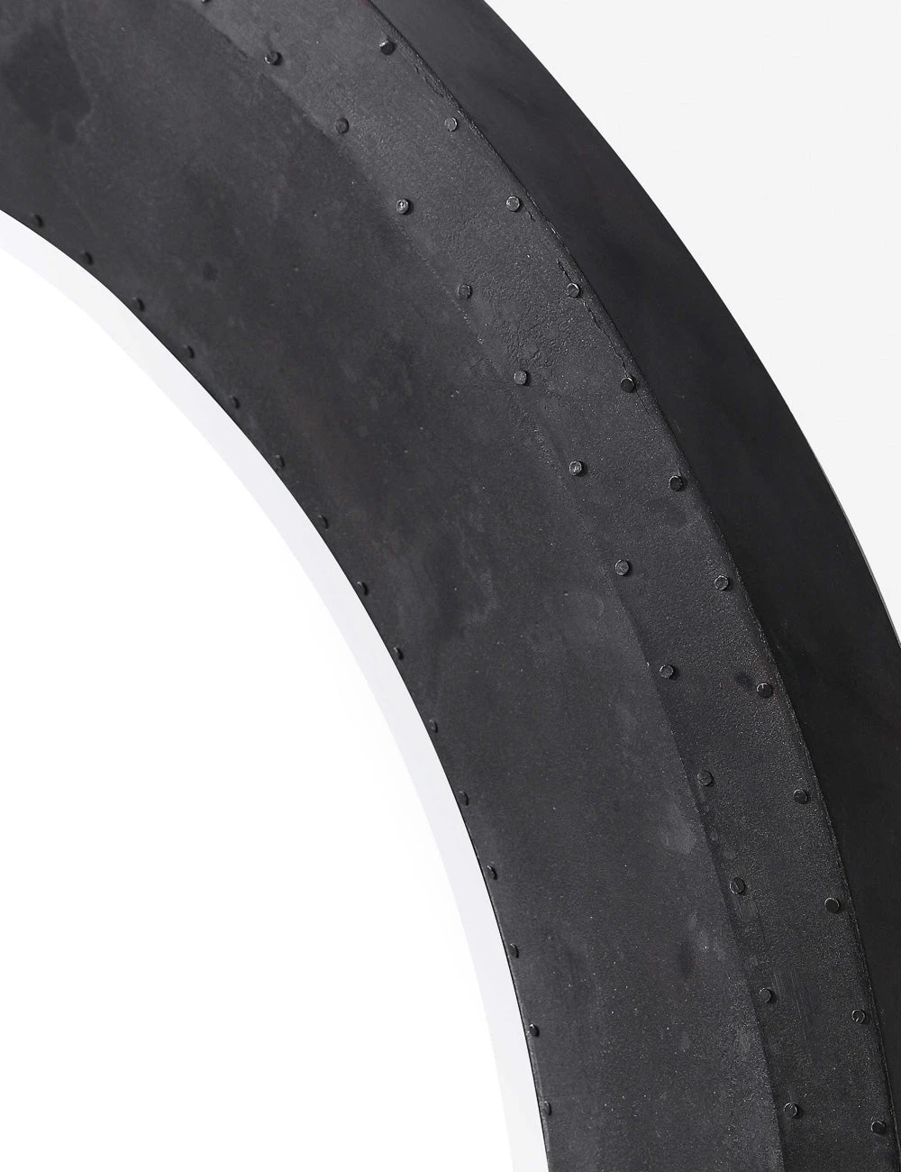 Industrial style is on full display in this round mirror design. The thick frame offers a rustic texture with nail accents to complete the look. A beveled edge adds a touch of refinement for transitional appeal.