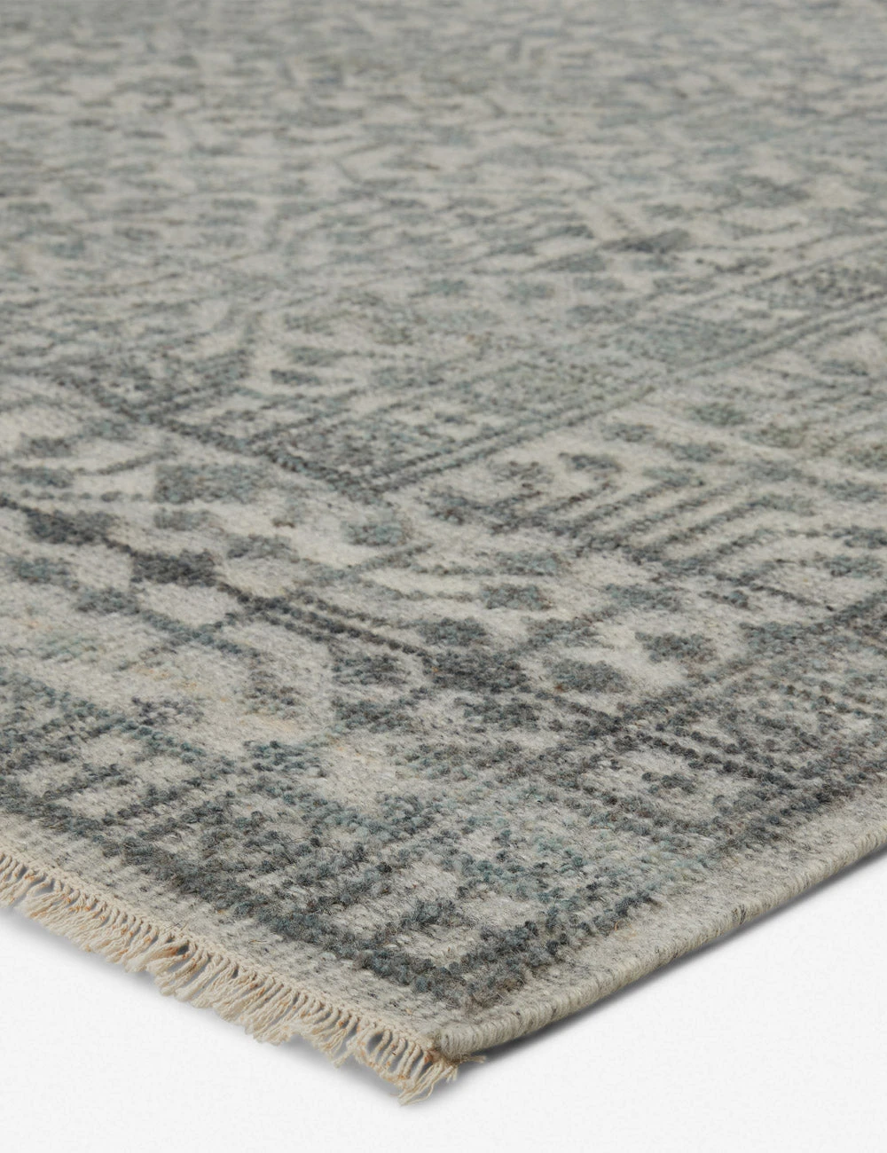 Crafted with a high-low carved texture, this hand-knotted rug features tonal grays with hints of blue for a soft and serene look. The space-dyed effect of the wool and viscose yarns lends a one-of-a-kind quality to this area rug.