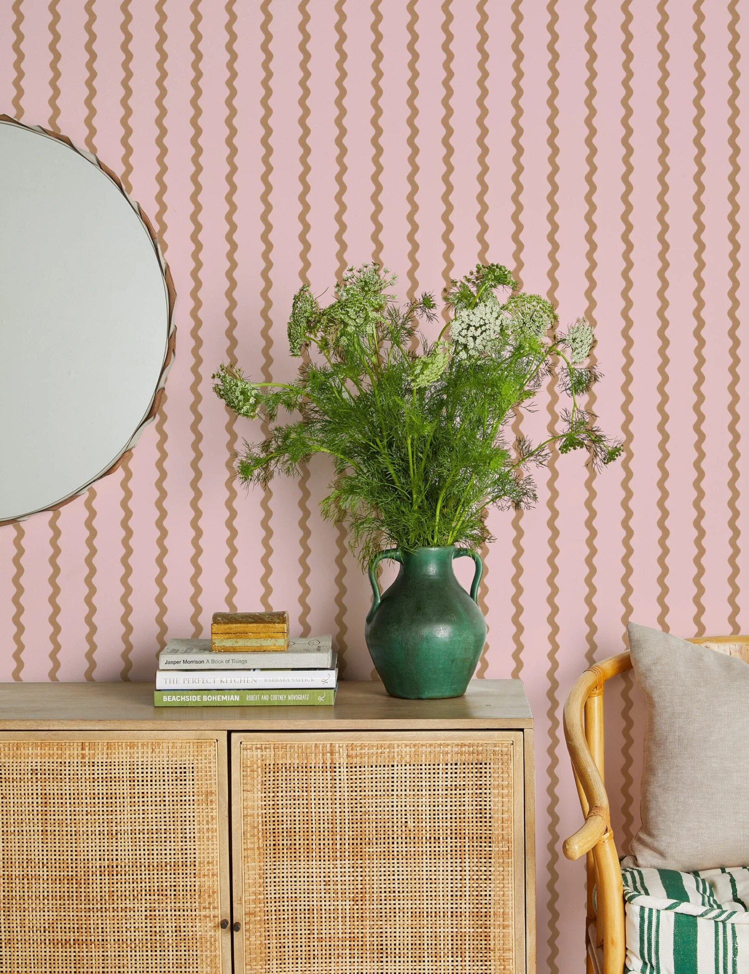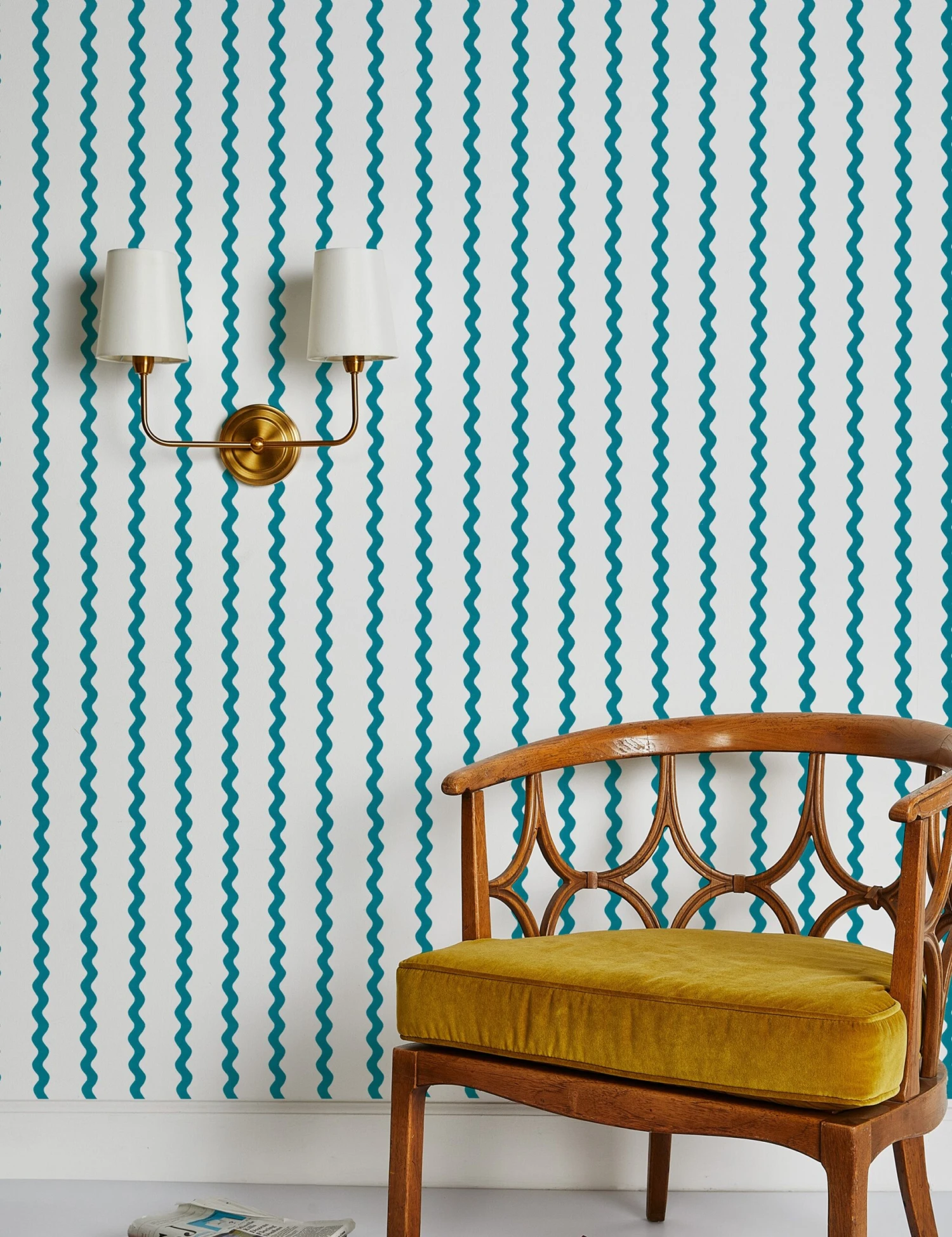 With wavy ribbon lines in a two-tone design, this modern wallpaper offers a dose of color and whimsy to transform your walls. From a collection by Sarah Jessica Parker and designer Eric Hughes, this peel and stick wallpaper offers that perfect pop of sophistication with timeless appeal.