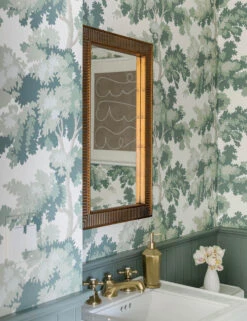 Elevate your decor with the clean lines and transitional style of this large wall mirror. The charcoal-finished burl wood frame offers a distinctive polish to any space while opening up the room with a stunning dimension.