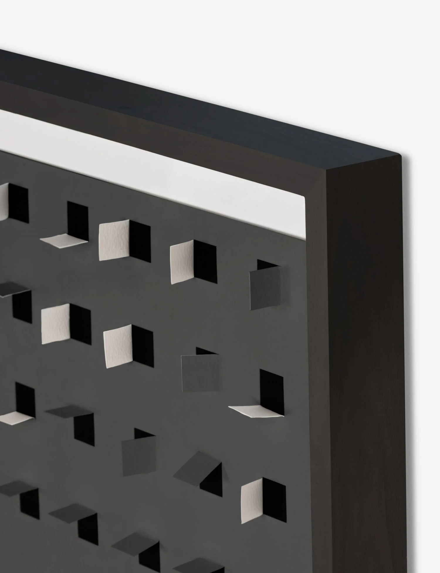 Paper cutouts create a striking array for modern wall decor with a textural edge. The offset flaps give the orderly rows a sense of fluttering movement, setting off this eye-catching wall artwork with balance and poise.