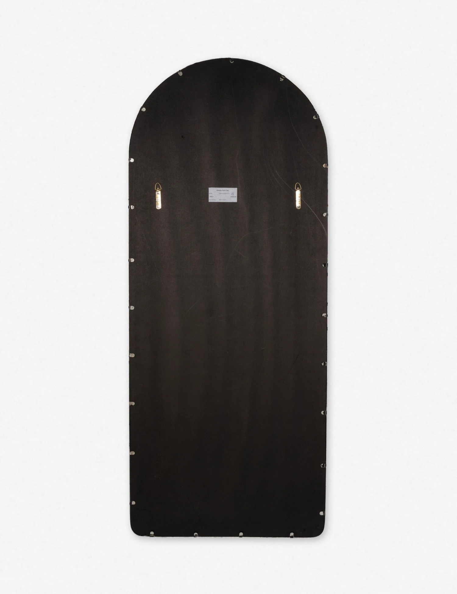 A sculptural arch design and rounded corners beautifully soften the look of this arched floor mirror, and its size means it reflects a huge amount of light, so it instantly brightens your space. This full body mirror’s clean, timeless style in a gold, black or silver finish lets you add this framed mirror to bedrooms, walk-in closets, living rooms, and entryways alike. Hang this large mirror or lean against a wall.