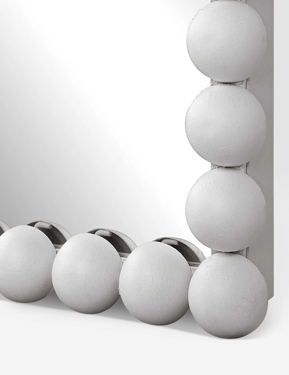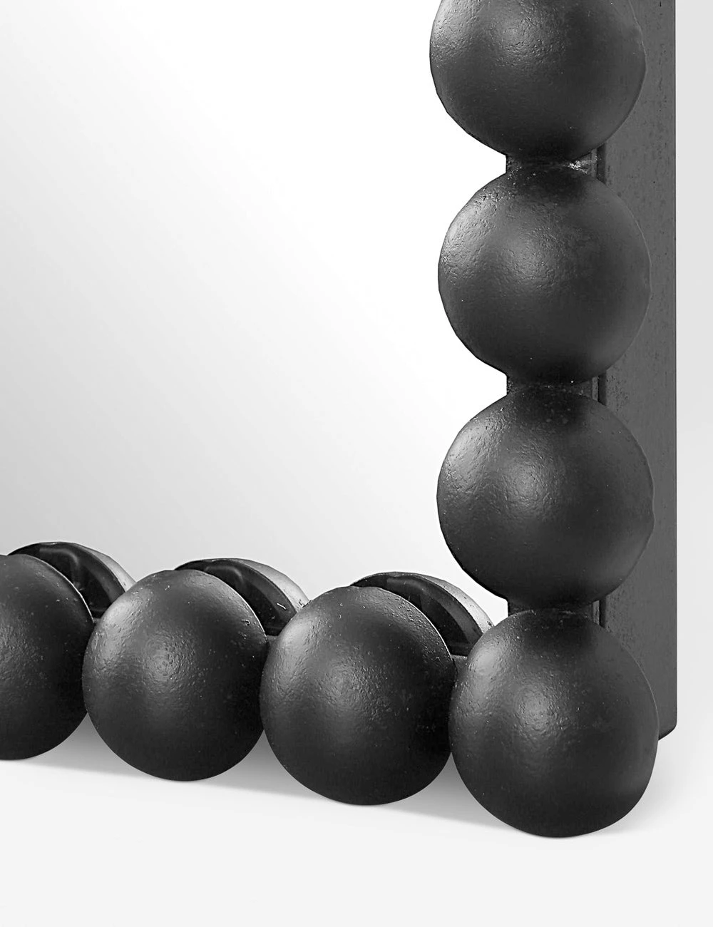 Layer a distinctive note into your look with this trend-forward full length mirror design. Iron beading and a high-tone finish add a chic touch to this framed mirror for a playfully modern appeal. Mount vertically, horizontally, or lean on a living space wall for a laid-back touch.